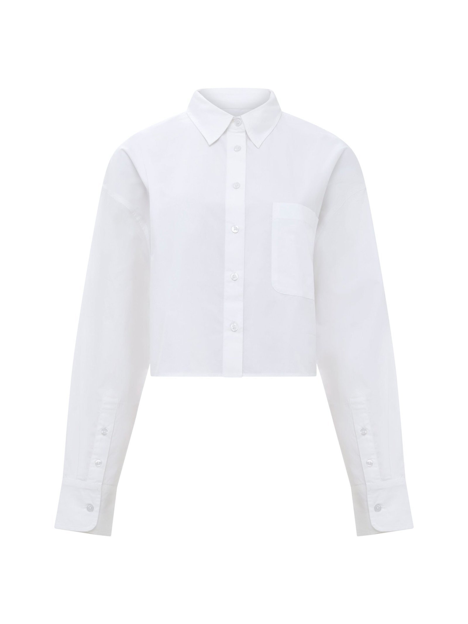 We’ve revamped a refined classic. With a collar. button-through fastening and breast pocket. our Alissa Cotton Cropped Shirt could be mistaken for a traditional shirt. however its long-sleeved silhouette is cut short for a contemporary take on the smart staple style.
